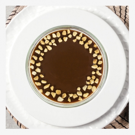 Aromat karmelu i orzechów unosi się jeszcze przed spróbowaniem. Czekoladowe ciastka stanowią bazę dla kolejnych pysznych elementów. Masa kajmakowa nadaje słodyczy i wyjątkowego charakteru tej propozycji. Drobno pokrojone orzeszki ziemne podkreślają precyzję wykonania deseru. Bita śmietana i czekoladowa glazura to niezwykłe wykończenie stanowiące o umiejętnościach cukiernika. Miłośnicy połączenia orzechów z czekoladą będą oczarowani tym deserem!